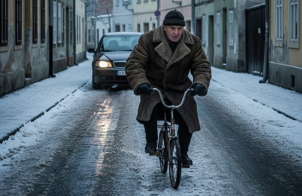 Hoće li mi neko objasniti kakav je to mentalni sklop koji sedne na bicikl po čistom ledu? Put je klizav kao ogledalo, a oni se pojave iz sporedne ulice bez kočenja.