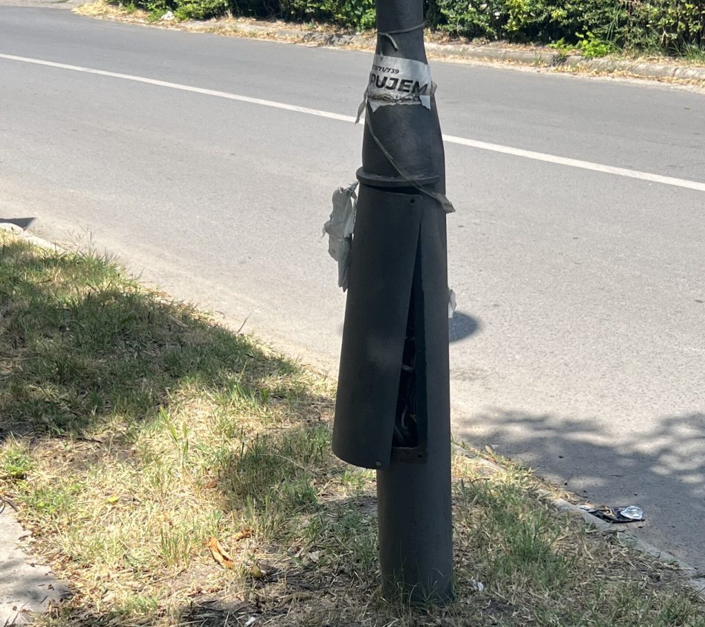 Na pomenutom stubu, donja vrata (poklopac) su otvorena, čime su električni kablovi i instalacije potpuno izloženi i dostupni svakom prolazniku. Na slikama u prilogu jasno se vidi da su kablovi nadohvat ruke, bez ikakve zaštite, što može imati teške posledice po bezbednost – uključujući rizik od strujnog udara.