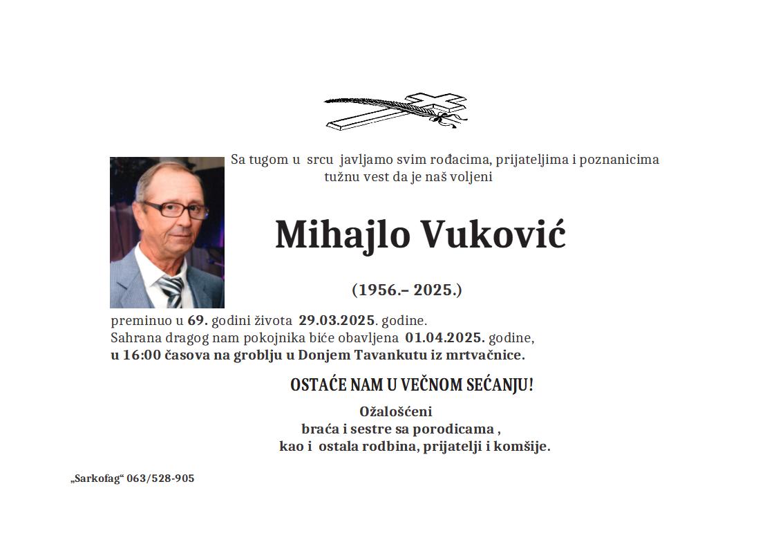 Preminuo u 85. godini života. Sahrana pokojnika biće obavljena 24.03.2025. godine, u 13:00 časova u Čantaviru.