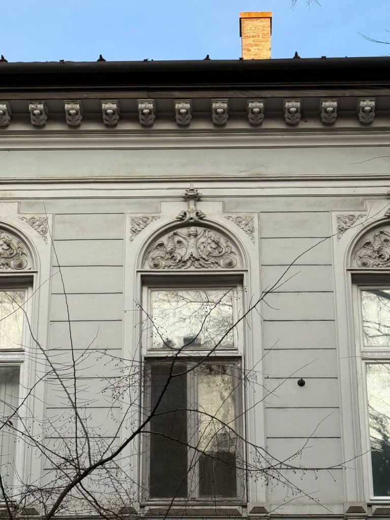 Prizemlje kuće odlikuje sedam jednostavnih otvora, od kojih je poslednji uzana kapija. Spratno fasadno platno bogatije je dekorisano — zidna malterska i gipsana plastika u luneti iznad prozora prikazuje vegetabilne i zoomorfne motive.