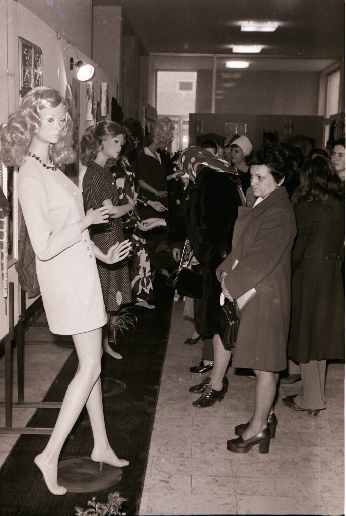 Na fotografiji vidimo gužvu ispred izložbenog prostora, gde su dame pažljivo birale i isprobavale modne komade. Klasični kaputi, elegantne torbe i sofisticirane kombinacije bili su neizostavni deo tadašnjeg trenda. Ovaj trenutak podseća na zlatno doba jugoslovenske modne industrije, kada su domaće firme poput Bačkaprodukta bile sinonim za kvalitet i stil.