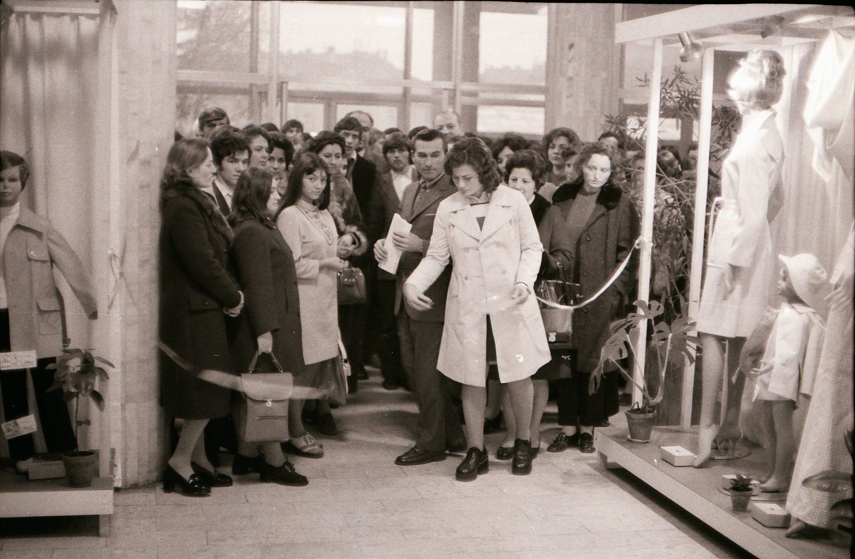 Na fotografiji vidimo gužvu ispred izložbenog prostora, gde su dame pažljivo birale i isprobavale modne komade. Klasični kaputi, elegantne torbe i sofisticirane kombinacije bili su neizostavni deo tadašnjeg trenda. Ovaj trenutak podseća na zlatno doba jugoslovenske modne industrije, kada su domaće firme poput Bačkaprodukta bile sinonim za kvalitet i stil.