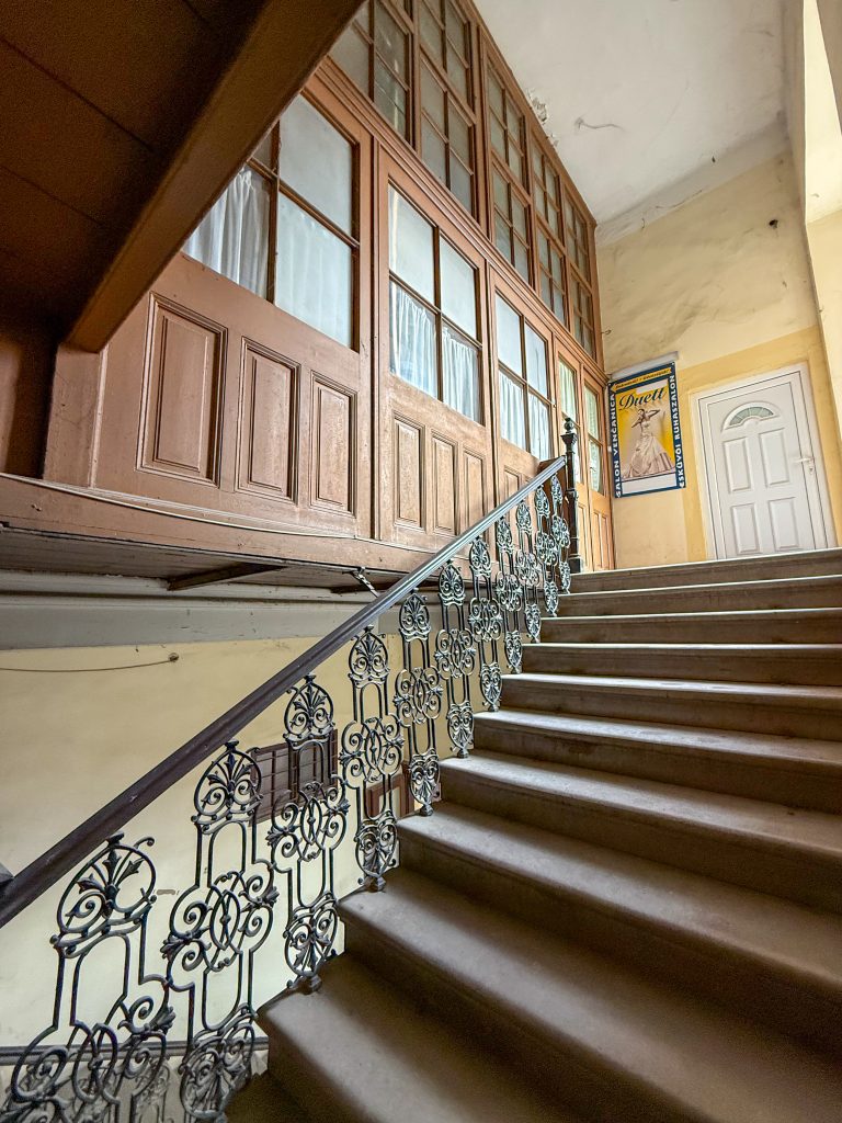 Sporedna fasada oblikovana je slično glavnoj, sa plitkim rizalitima, ali sa po jednim prozorom na njima. Svojom strogo simetričnom kompozicijom, ponavljanjem identičnih arhitektonskih elemenata i prozorskih otvora, ova zgrada izražava smirenu harmoniju i monumentalnost renesansne arhitekture. Svaki detalj na fasadi je promišljen, a celokupna kompozicija odiše skladom i proporcijom.