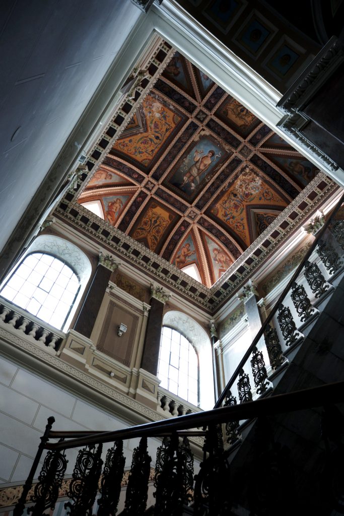 Palata je projektovana sa pažljivo osmišljenim rasporedom prostora. U prizemlju su se nalazili lokali za izdavanje, dok su na spratu bili stambeni stanovi. Centralni hodnik delio je reprezentativne prostorije okrenute ka ulici od ekonomskih prostorija koje su gledale ka dvorištu. Unutrašnjost zdanja krasi raskošno oslikano stepenište sa skulpturama koje dodatno ističu monumentalnost objekta.