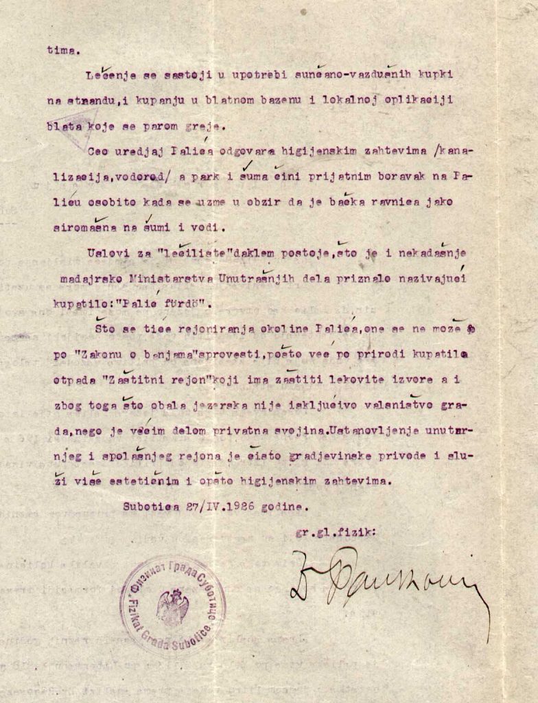 Fotografija: Istorijski arhiv Subotice, Izveštaj Gr. fizikata 1926.