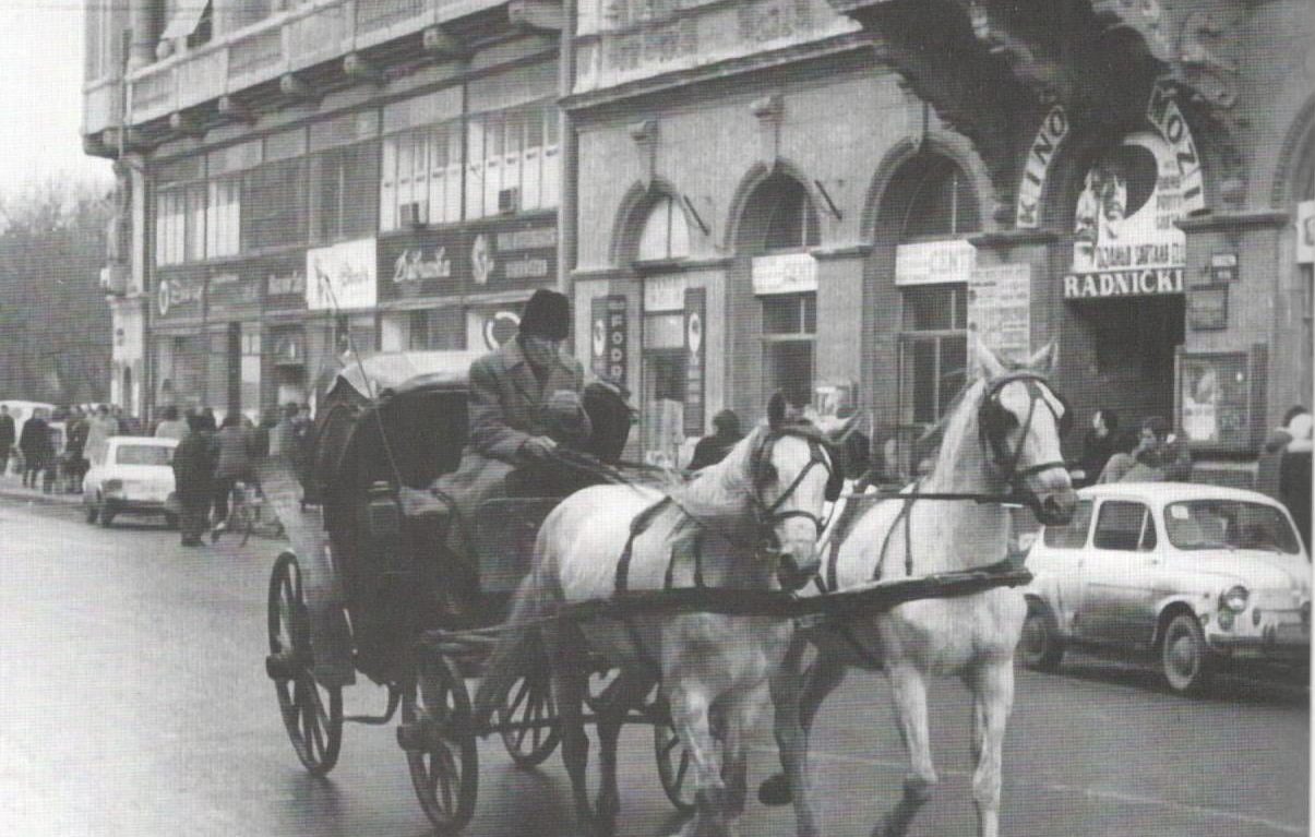 U pozadini se jasno prepoznaje ulaz u bioskop „Radnički“, mesto koje je okupljalo generacije ljubitelja sedme umetnosti. Radnički je bio simbol kulture i zabave, a filmske projekcije privlačile su publiku svakog dana.