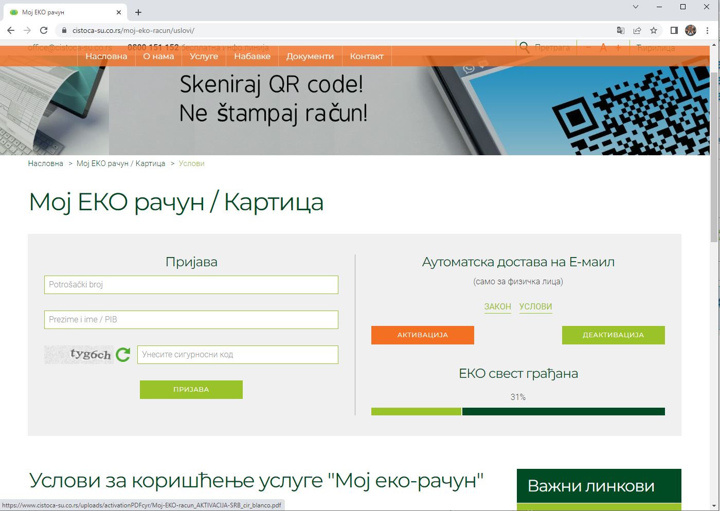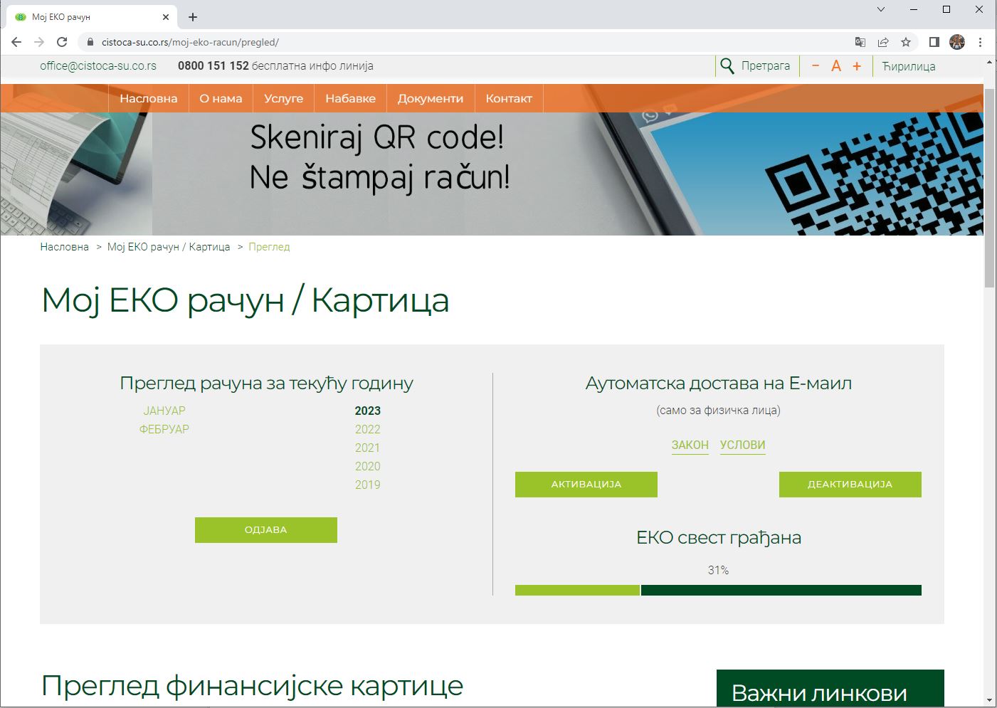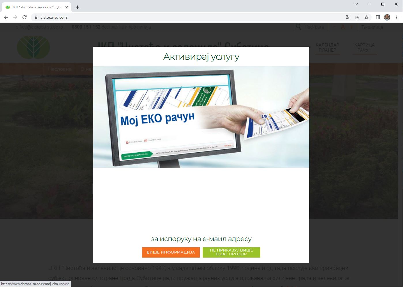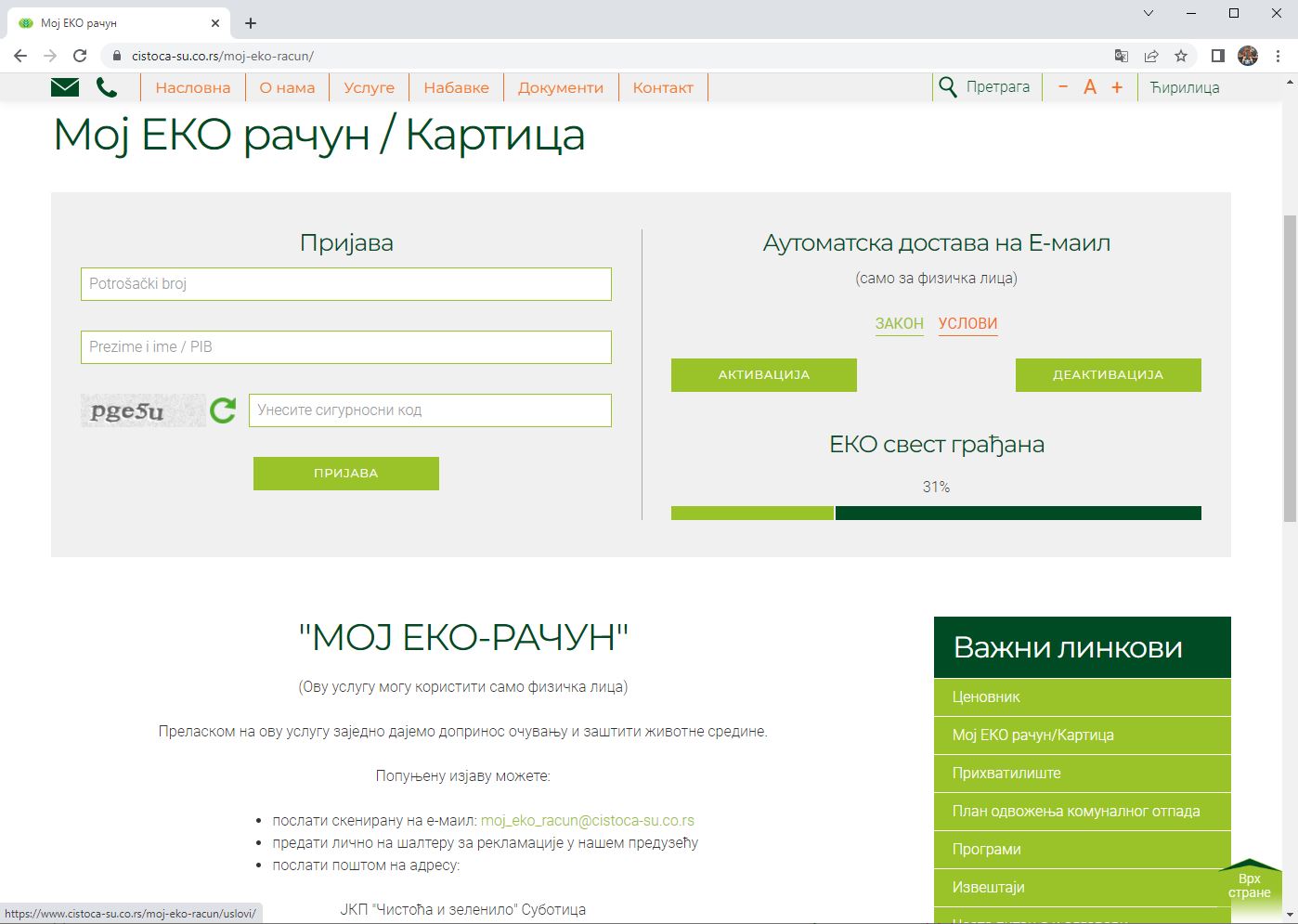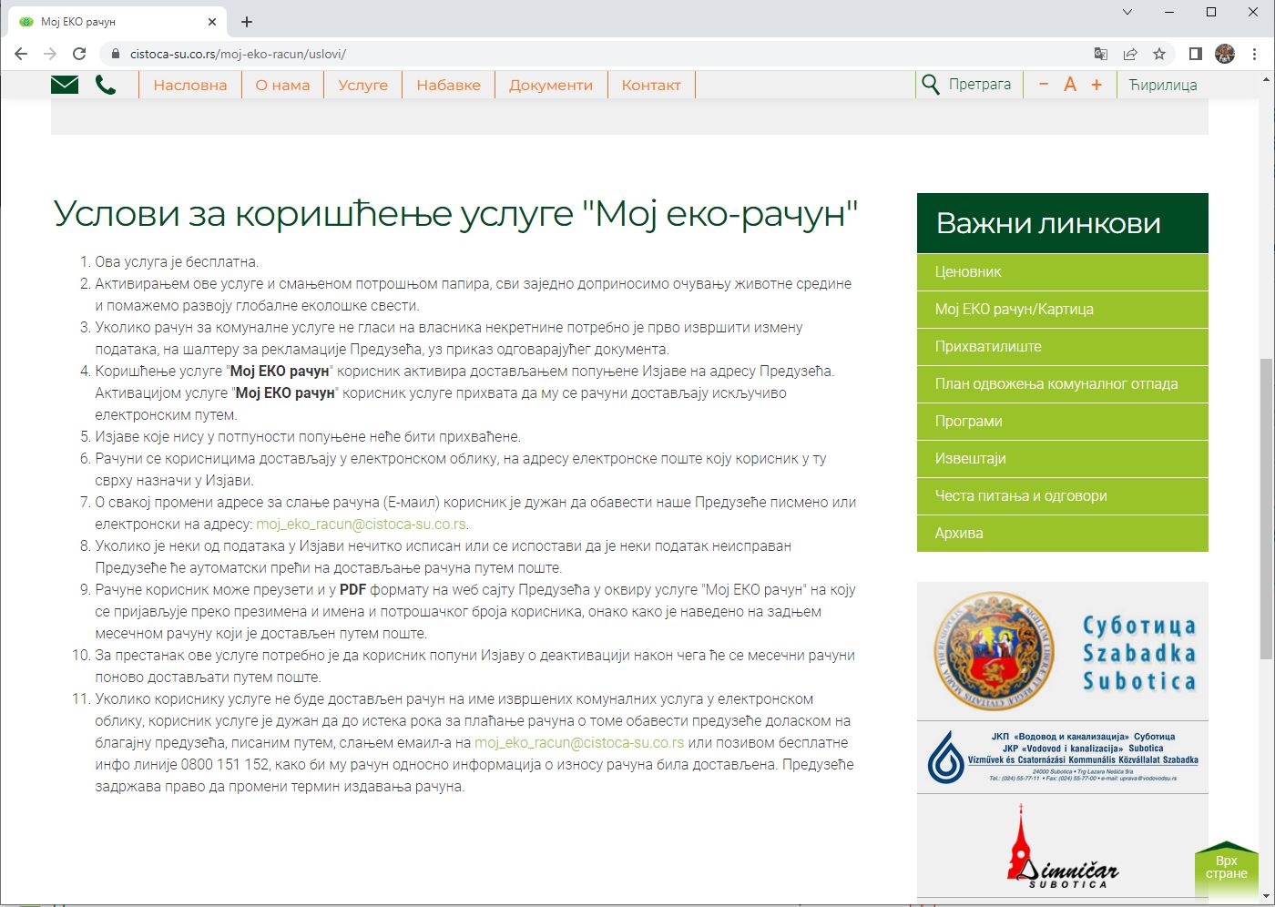 JKP “Čistoća i zelenilo” Subotica naglašava da aktiviranjem ove usluge i smanjenom potrošnjom papira, svi zajedno doprinosimo očuvanju životne sredine i pomažemo razvoju globalne ekološke svesti.