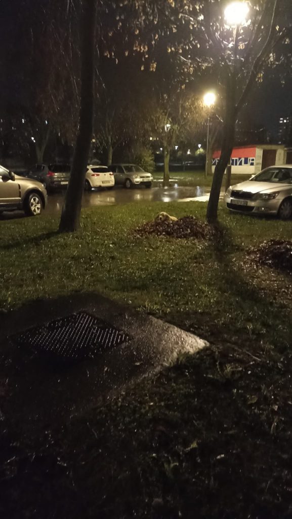 “Da li iko može bar večeras da ovoj kuci pruži skrovište od kiše? Skroz je mokar i trese se, mislim da ima i temperaturu. Danas je bio sasvim dobro i lepo raspoložen, sigurna sam da se samo smrzao. Donela sam mu da jede i probala da ga namamim ispod neke strehe, ali ne želi da se pomeri. Ukoliko je iko u mogućnosti bar večeras da mu pomogne, nalazi se kod zgrade u Lajoša Joa 87, kod parkinga koji je do parka”.