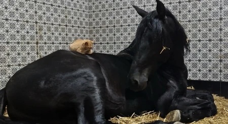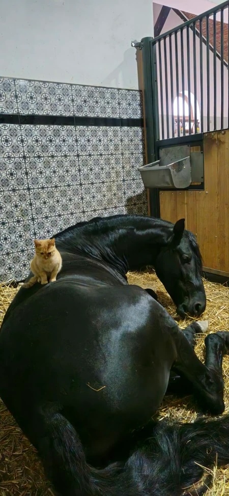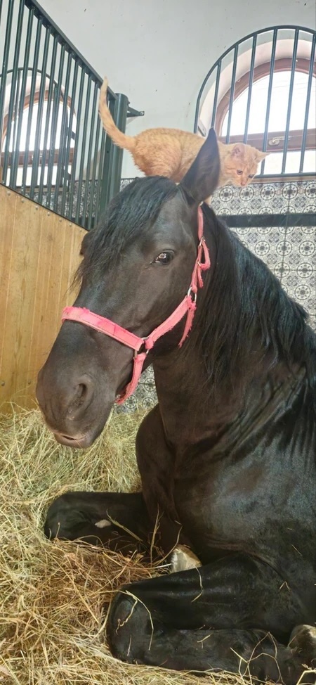 Dok konj Espanja uživa u svom boksu u štali ili se sprema za trening, oko nogu mu se mota Cicko – živahno mlado mače, neuporedivo manje od moćnog andaluzijskog pastuva. Došao je samo po malo maženja i druženja, a zvuk zadovoljnog predenja pokazuje koliko su dobri drugari postali tokom proteklih par nedelja.”To je naše mače koje se omacilo na ergeli i kada je stasalo da izlazi napolje i istražuje prostor, primetili smo da uvek stoji kod vrata gde je taj konj i samo čeka da neko otvori vrata“, priseća se Ljubica Šipovac, naša sagovornica sa Ergele Kelebija, prvog susreta između ova dva neobična prijatelja.