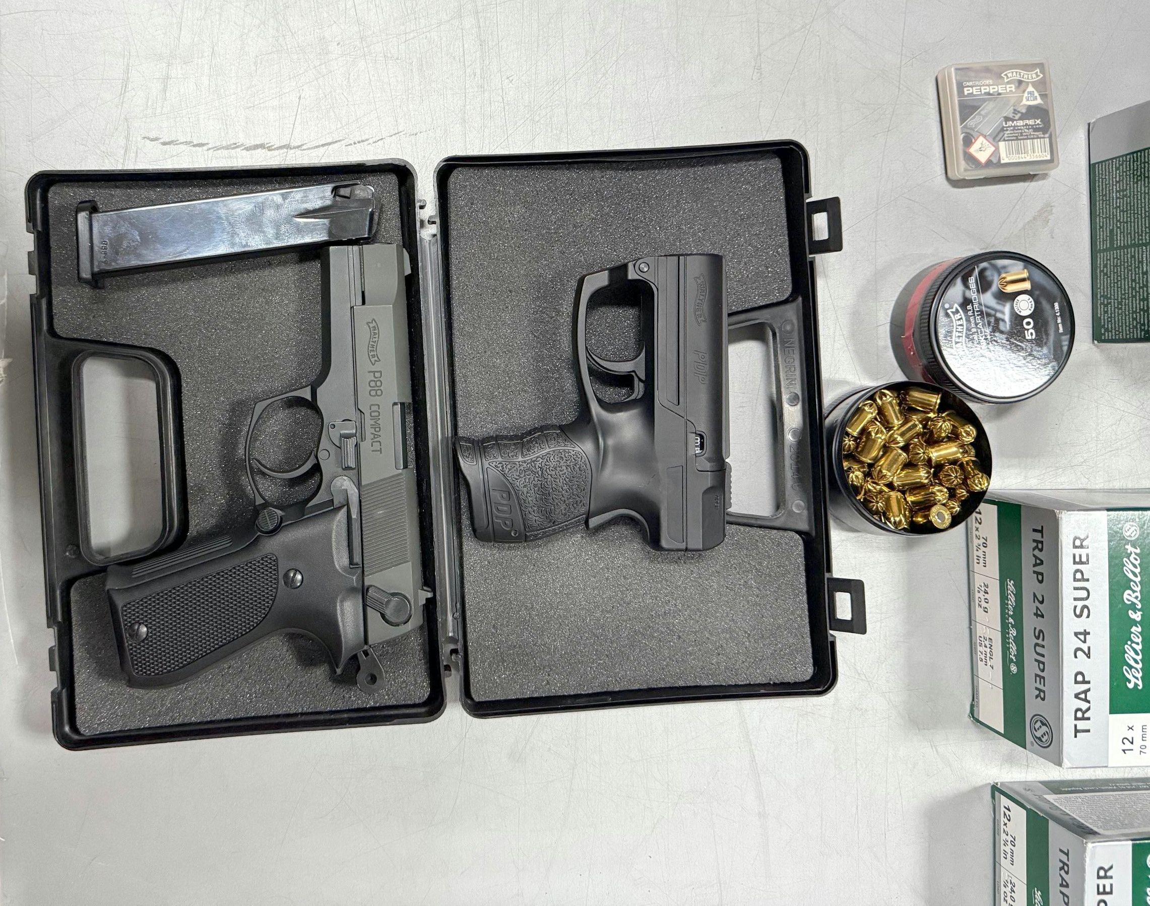 Tada su u torbi jednog putnika pronađeni pištolji ”Walter P8 compact” kalibra 9mm i ”Walter PDP” za ispaljivanje biber spreja sa pripadajućom bocom ove materije.