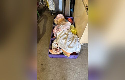 • Katastrofalno skladištenje: Meso na podu, pored odvoda, na temperaturama koje su idealne za razvoj opasnih bakterija poput salmonele i ešerihije.