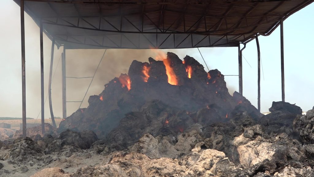 Profesionalni vatrogasci iz Bačke Topole su još i u četvrtak prepodne pokušavali da ugase požar vodenim topom u zadnjem dvorištu farme, gde su bile uskladištene bale slame i lucerke. Plamen je prvo zahvatio slamu predviđenu za ishranu stoke, i to gotovo dva sata nakon što su radnici otišli kući – rekao je vlasnik farme van kamere. Komšija koji živi u blizini primetio je dim i obavestio gazdu da nešto tinja u zadnjem delu dvorišta. Kada je stigao, plamen je već prelazio sa jedne na drugu gomilu bala, a dodatni problem stvarao je i jak vetar.Ž