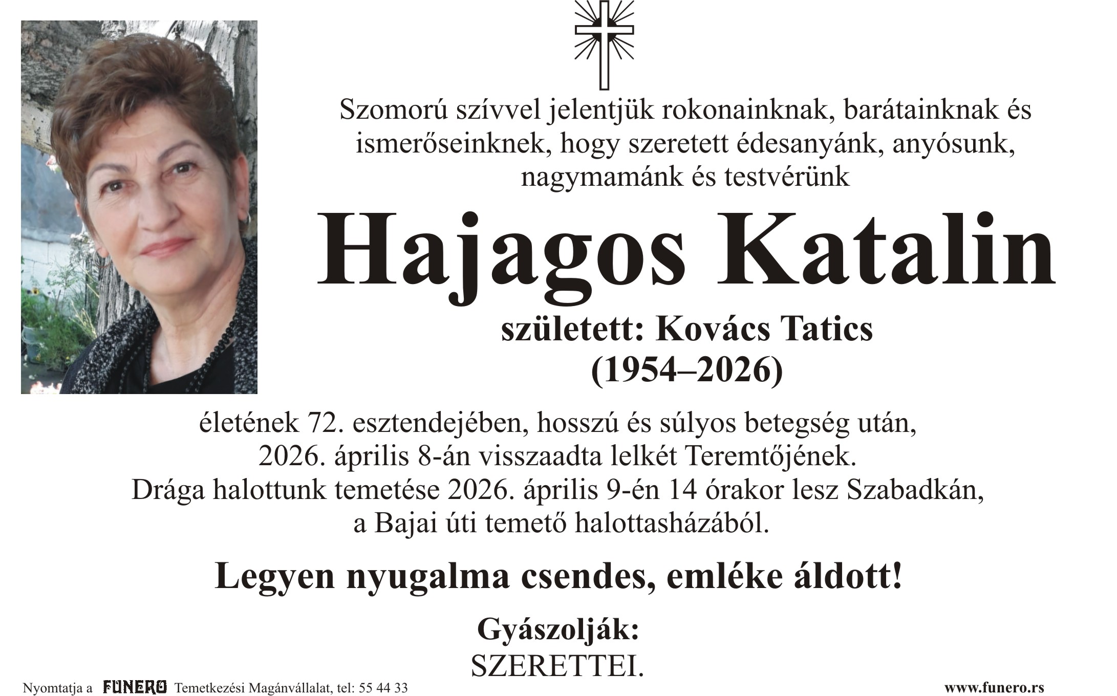 | Katalin Hajagoš | Bajsko | Mrtvačnica | 14:00 |