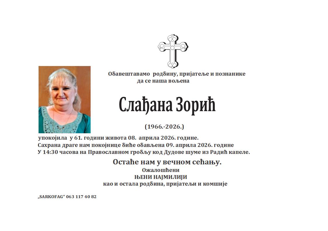 | Miladinka Dulić | Kersko | Mrtvačnica | 13:00 |