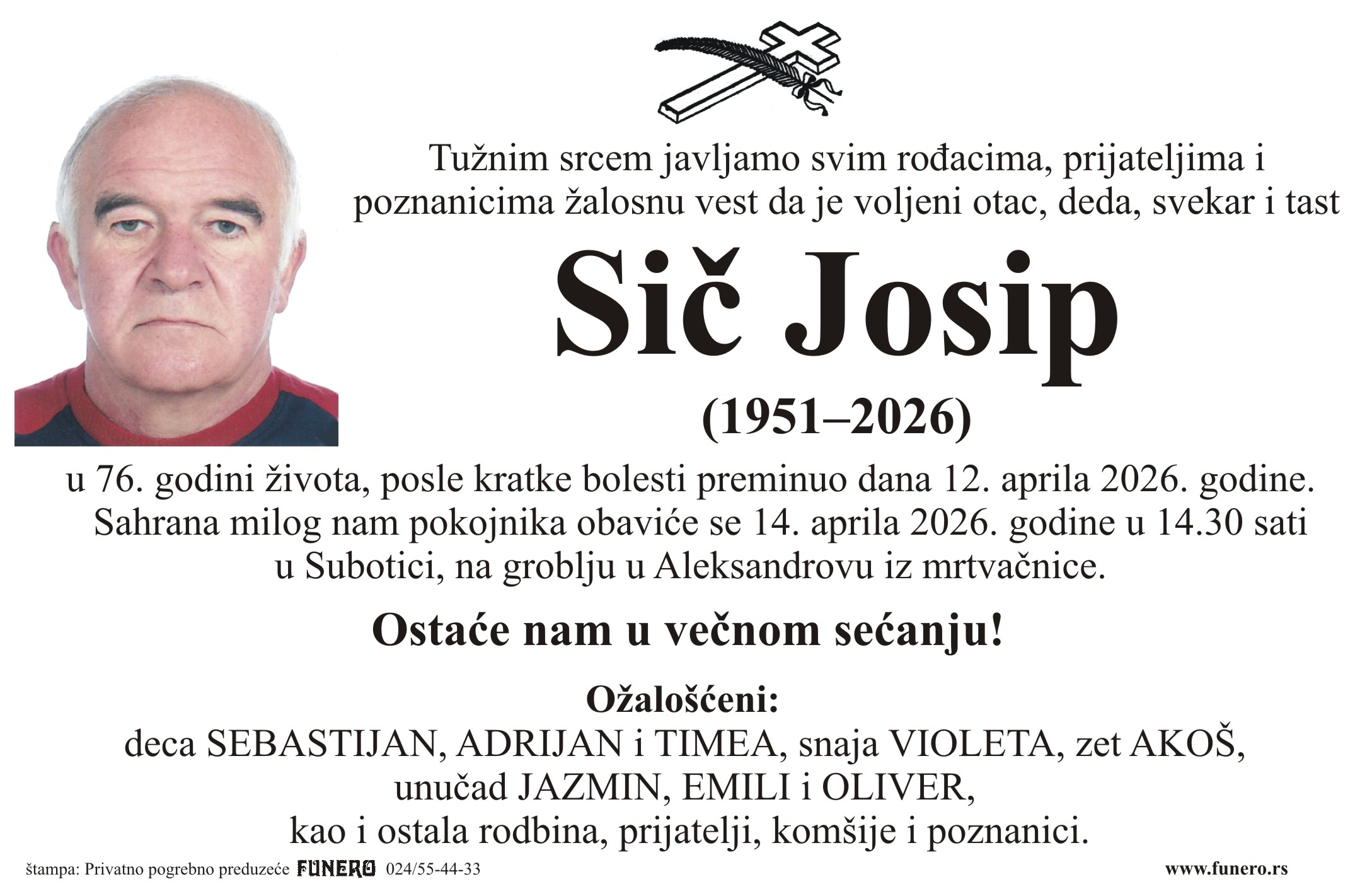 Raspored sahrana u Subotici za 14. april 2026. godine – UTORAK