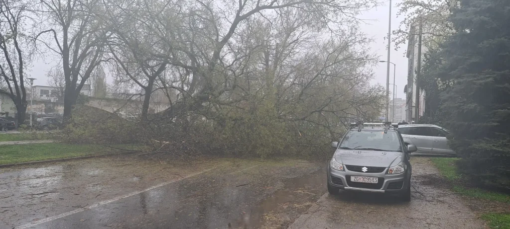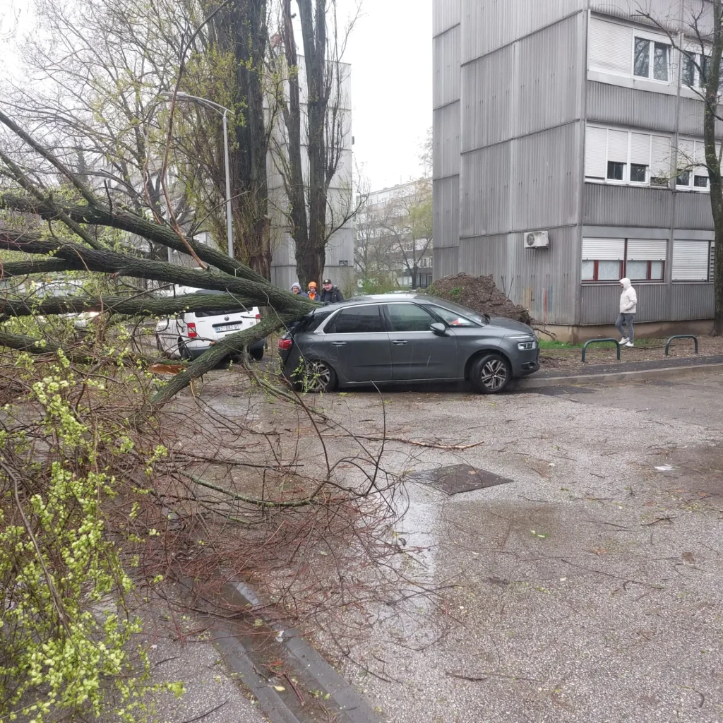 Olujno nevreme koje je jutros zahvatilo Zagreb ostavilo je za sobom tragične prizore. Snažan vetar, praćen kišom, lomio je grane i čupao stabla iz korena po celom gradu…