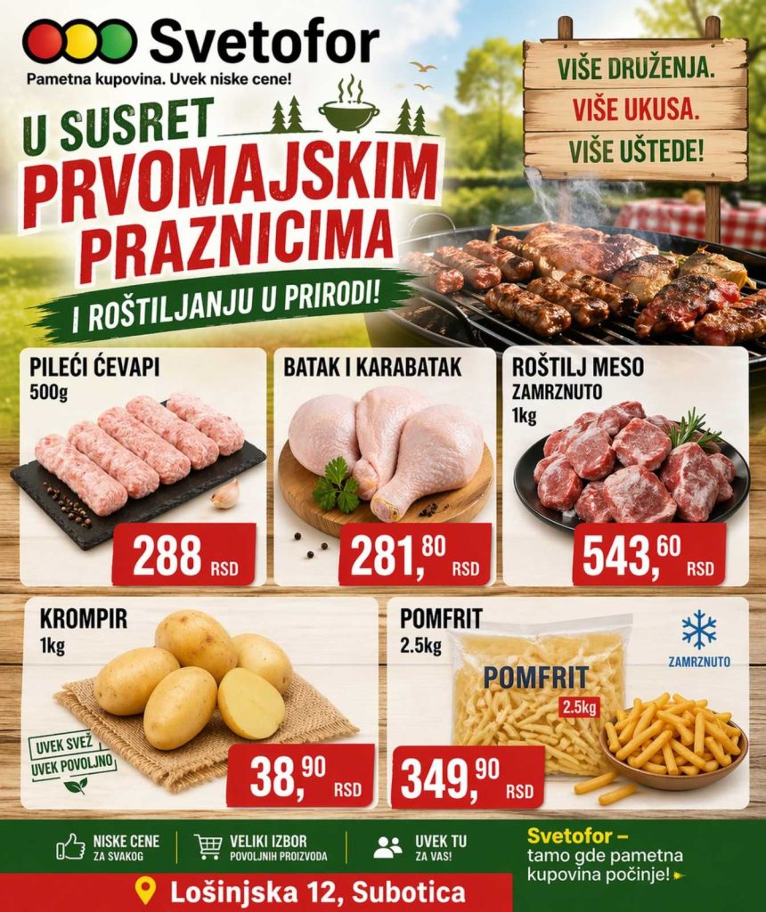 Dok se Subotičani polako pripremaju za tradicionalni Prvomajski uranak i izlete u prirodu, trgovinski lanac Svetofor objavio je specijalnu akcijsku ponudu koja će značajno olakšati praznični budžet.